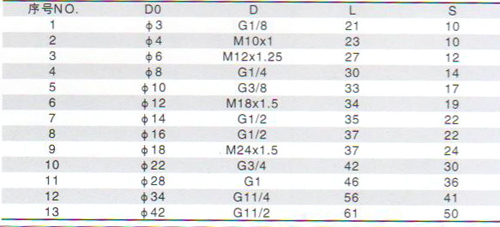 卡套接頭的工作原理是將管插入卡套內(nèi),利用卡套螺母鎖緊,抵觸卡套,切入管子而密封。它與管連接時不需焊接,有利于防火、防爆和高空作業(yè),并能消Chu焊接不慎帶來的弊端。因而它是煉油、化工、石油、天然氣、食品、制藥、儀器儀表等系統(tǒng)自控裝置管路中的一種較為先Jin的連接件。適用于油、氣、水等管路連接。制造標準:GB3733.1~3765-83公稱壓力:25MPa--40MPa適用溫度:≤450℃適用介質(zhì):油、水、氣等非腐蝕性或有腐蝕性介質(zhì)制造材料:304 316 20#配管:Φ4~Φ42的普通級精度鋼管錐管螺紋:ZGGNPT等卡套接頭概述: 卡套式管接頭由三部分組成:接頭體、卡套、螺母。當卡套和螺母套在鋼管上插入接頭體后,旋緊螺母時,卡套前端外側(cè)與接頭體錐面貼合,內(nèi)刃均勻地咬入鋼管,形成有Xiao密封。